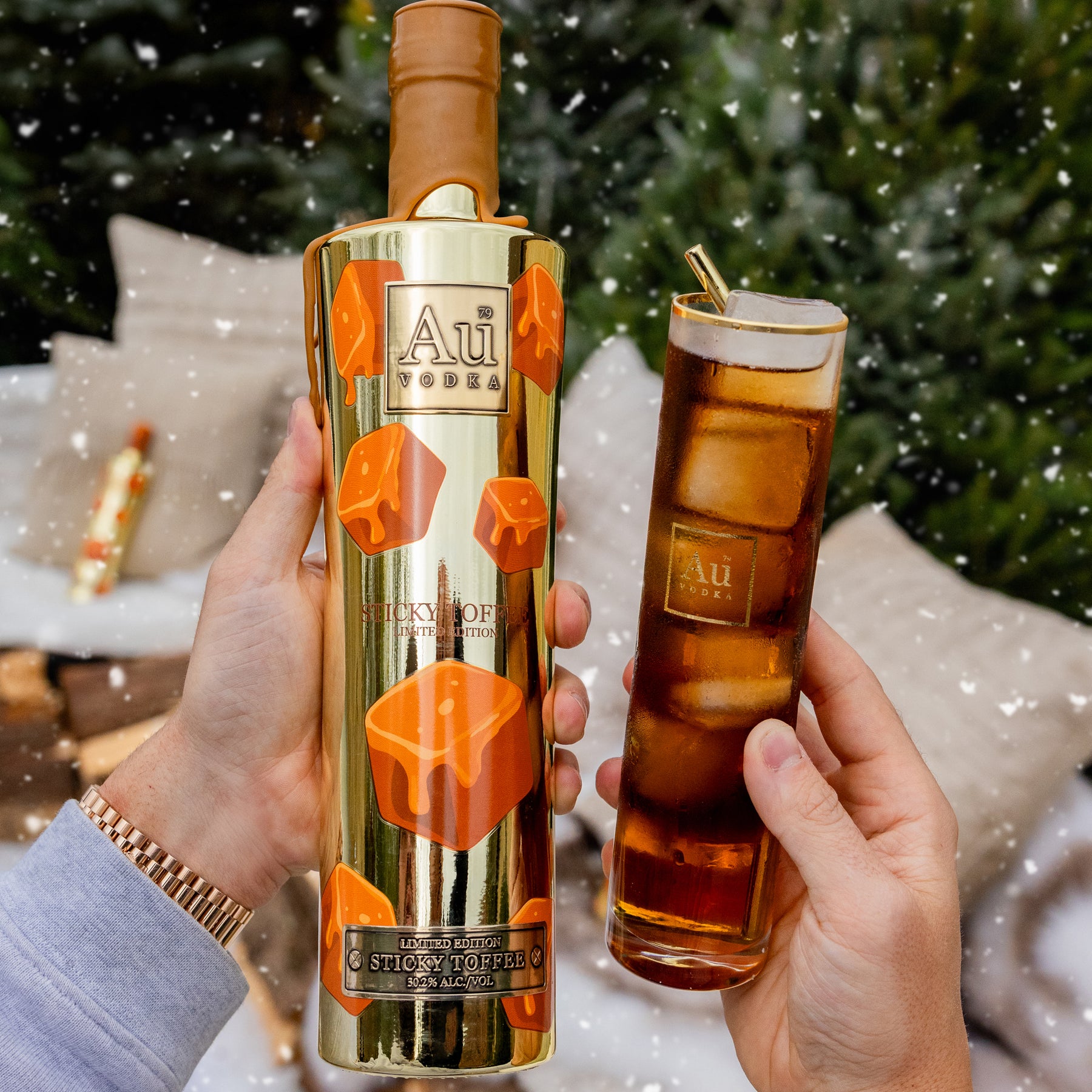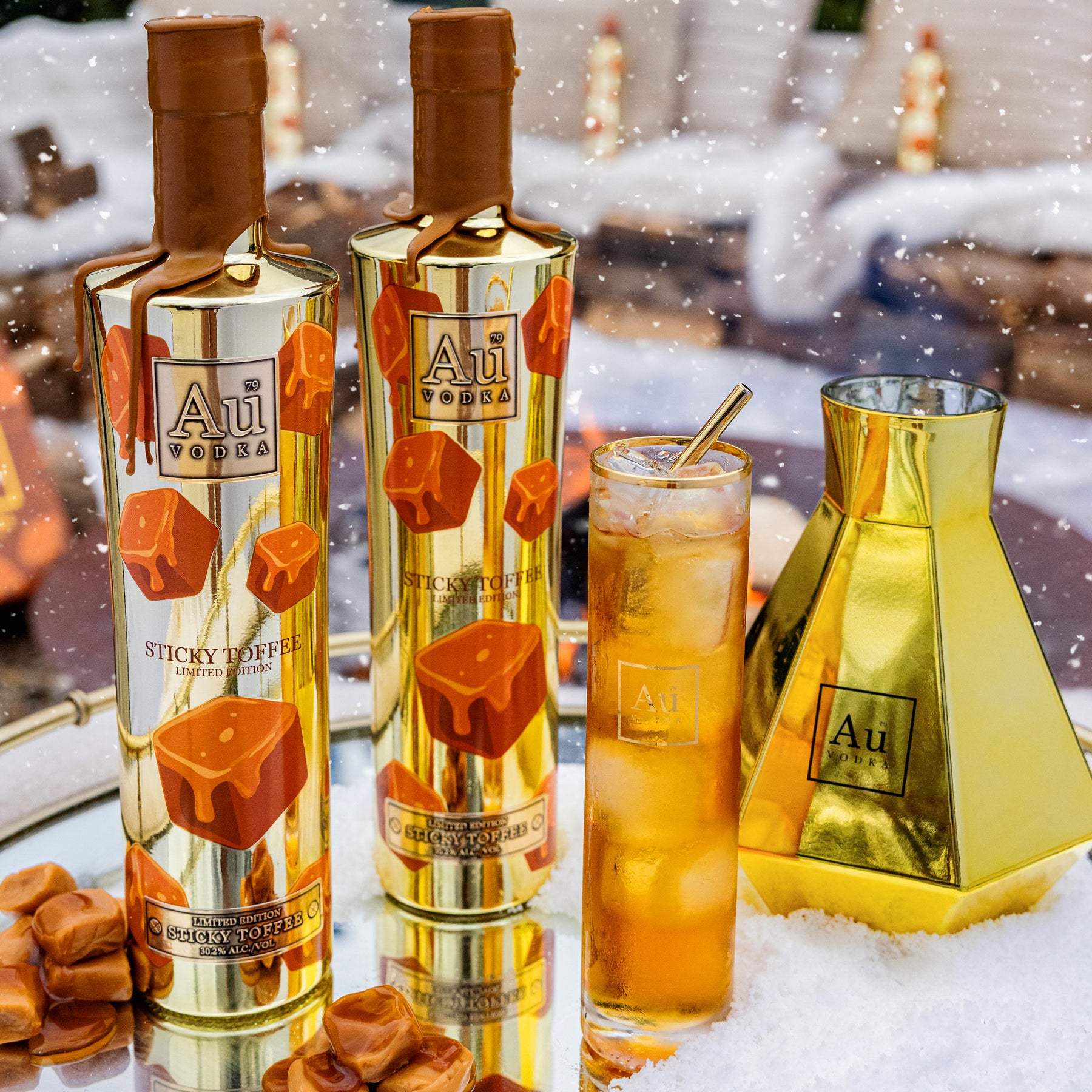 Au Vodka Sticky Toffee 700ml & Highrise Glass