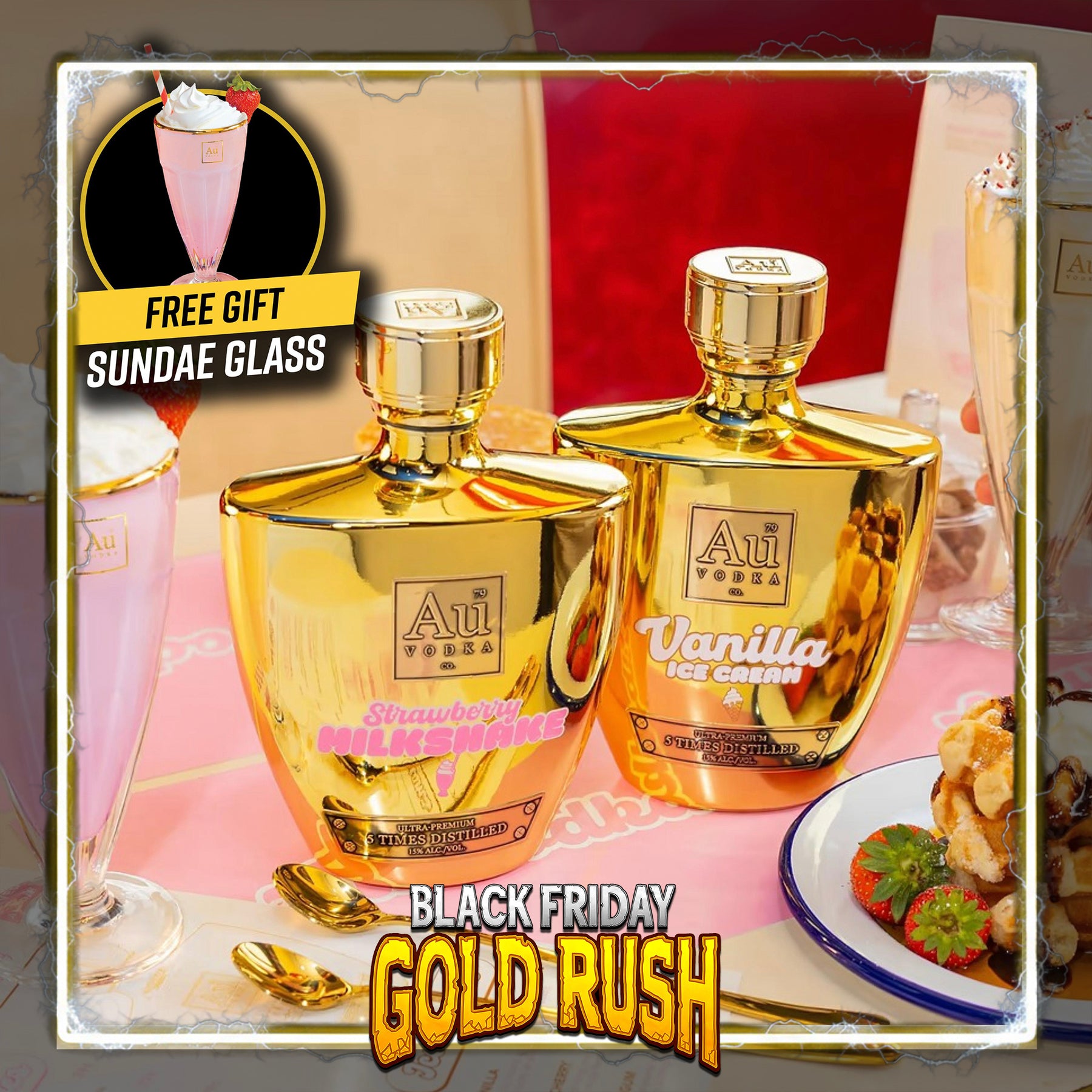 This NEW 2-Bottle Combo pairs our unique, smooth vodka milkshakes, Au Vodka Vanilla Ice Cream & Strawberry Milkshake, presented in our signature gold trophy bottle. 🏆