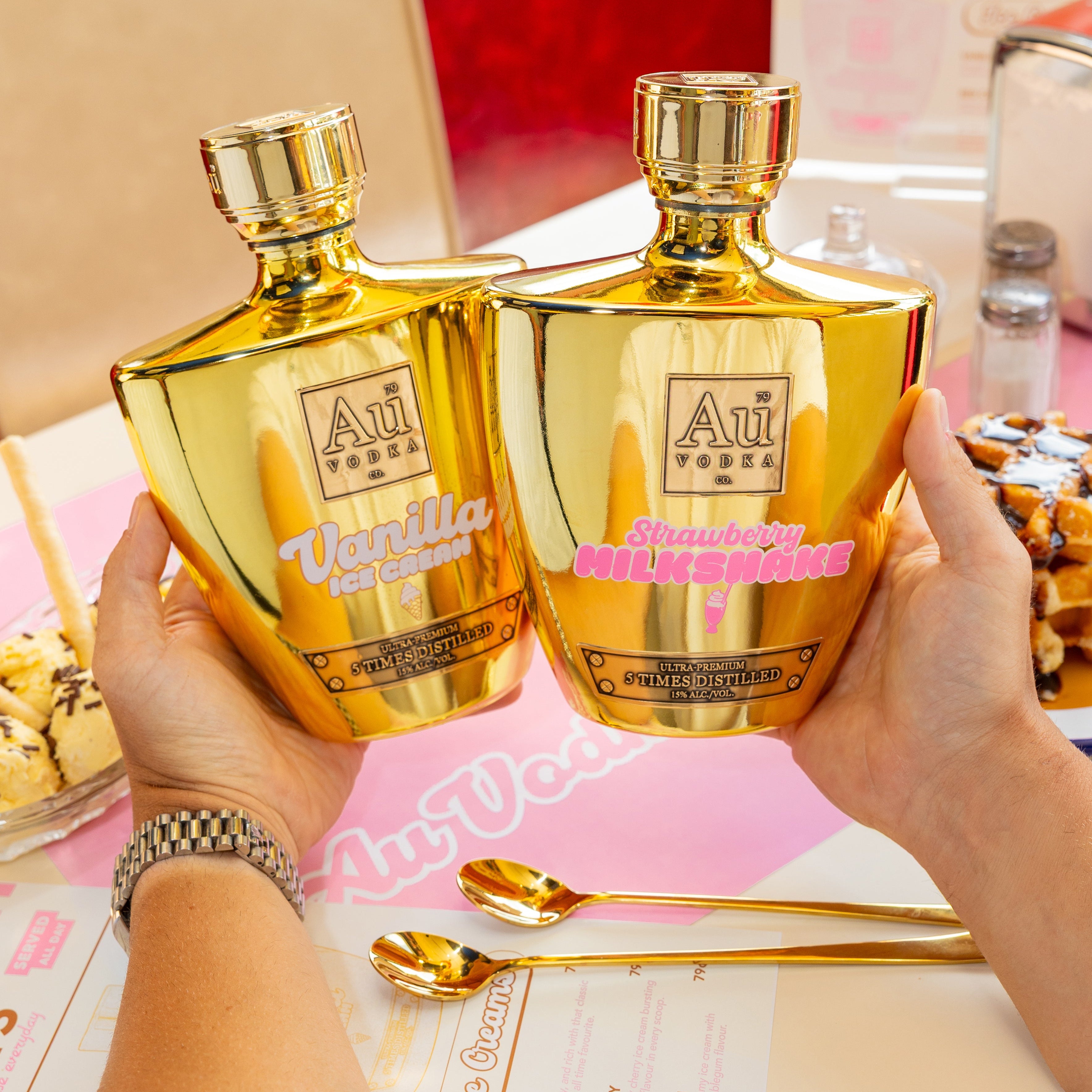 Jackson and Charlie, two entrepreneurial school friends, identified a unique opportunity in the vodka market for a distinctive and disruptive brand tailored to the new generation. Amidst a sea of clear and frosted vodka bottles, especially in the premium segment, nothing truly stood out. They envisioned a premium vodka brand synonymous with success, aimed at shaking up the status quo of the market. After months of meticulously aligning their values with their branding, the iconic gold Au Vodka bottle was born in the small town of Swansea, Wales.